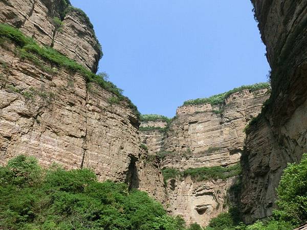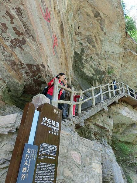 搭乘景區內環保車前往驗票處時,沿途是可以欣賞一下陡峻的太行峭。