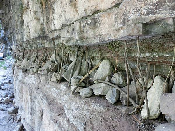岩壁內也有特別的裝置藝術,男孩拿石頭或樹枝,塞入壁縫裡,頂著天立著地,象徵男兒頂天立地,此當地習俗也成功掀起話題性