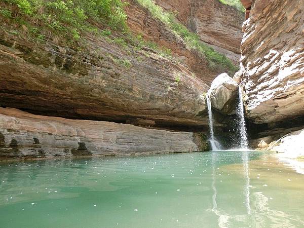 沿谷流下的溪水跌落成瀑,瀑落成潭,潭瀑相連