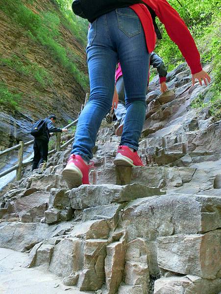 沿途前往飛龍峽棧道的這一段路,要手腳並用攀爬,坡度不高,但對行動不便的遊客真有難度